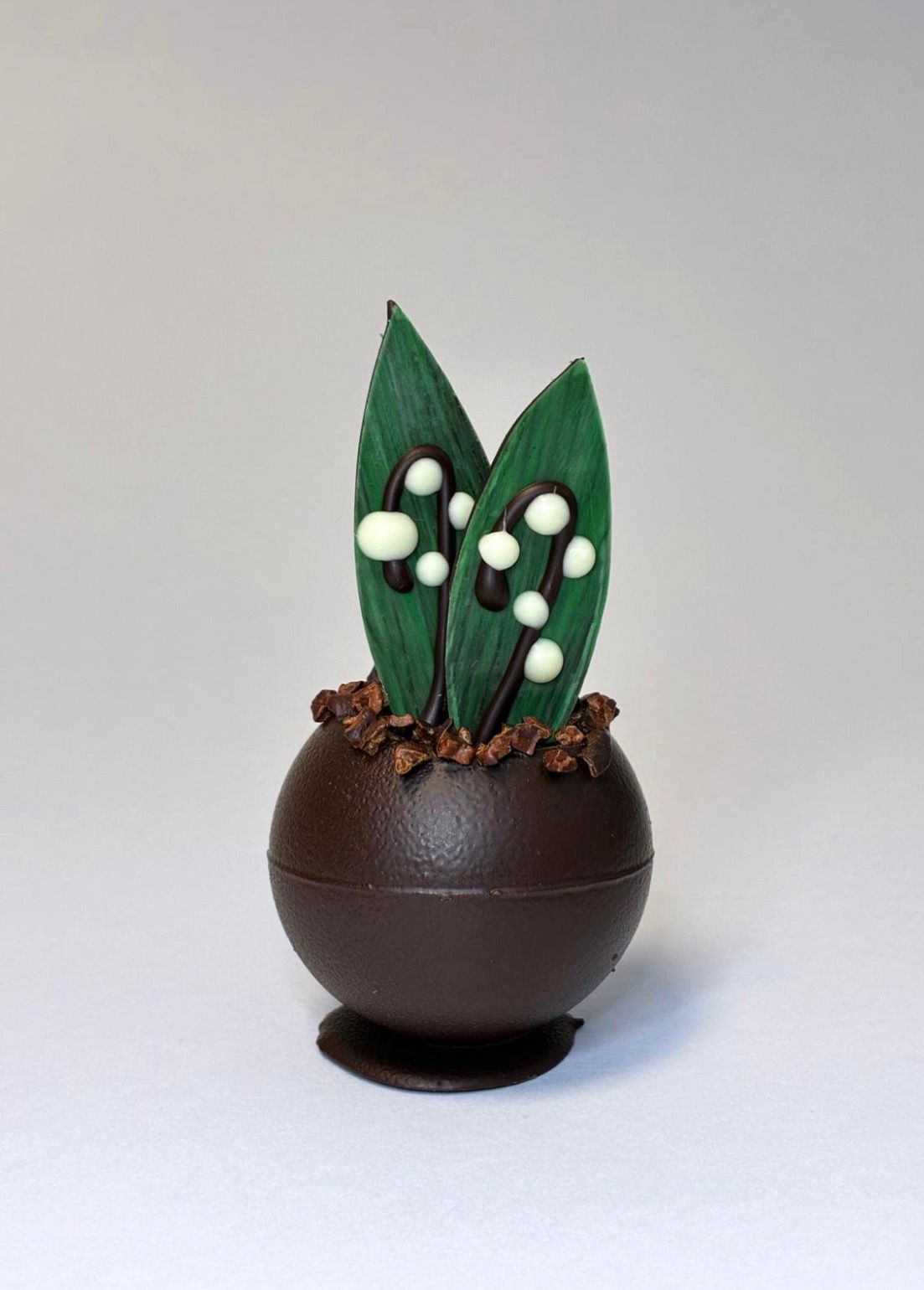Pour célébrer le 1er mai, découvrez nos délicieux pots de muguets en chocolat noir fourré d’un praliné riz soufflé et d’une ganache Colombie. Une douceur gourmande et originale pour offrir ou se faire plaisir.